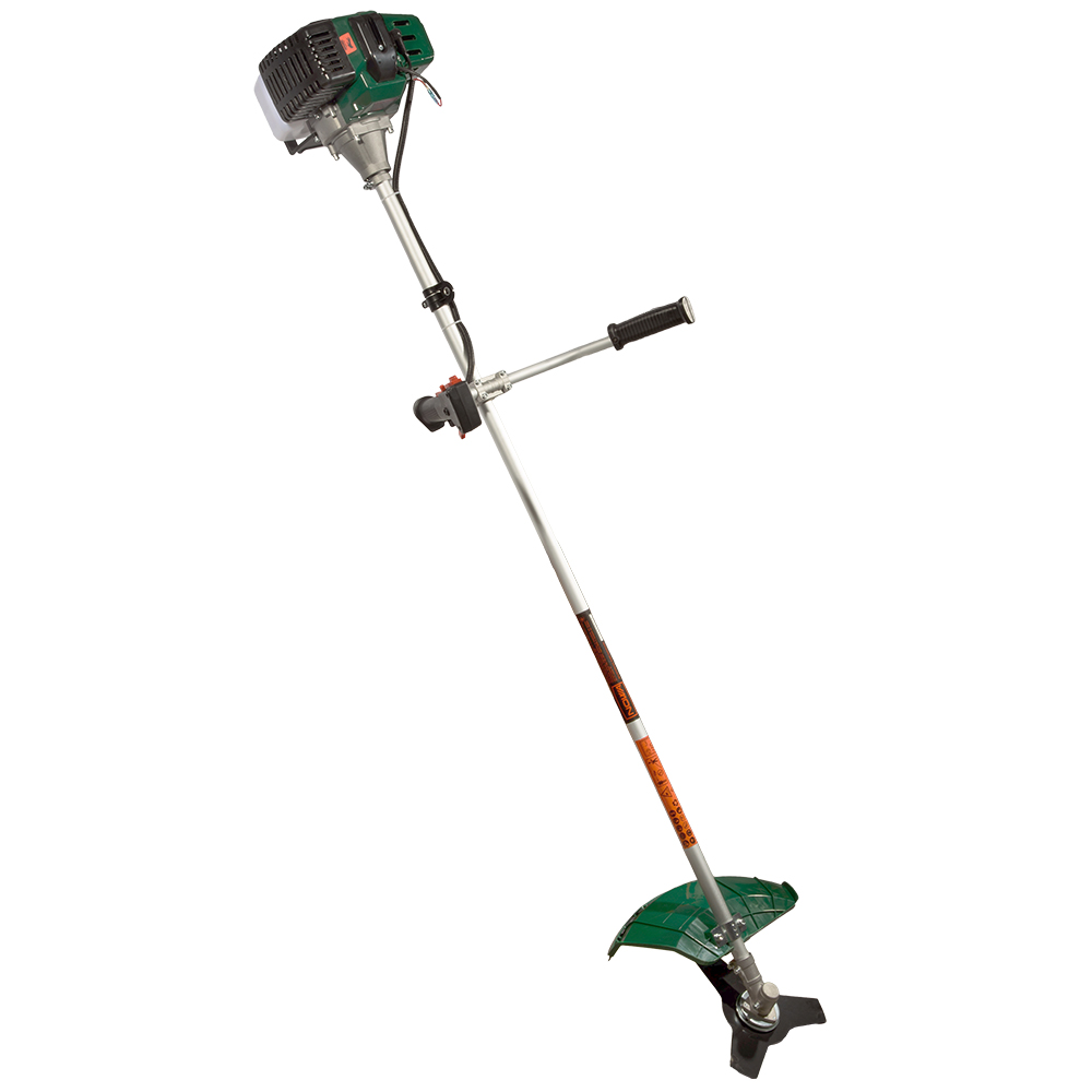 - режущая головка с леской и дисковый режущий нож с 3-мя лезвиями в комплекте позволяют обрабатывать как траву, так и более жесткую растительность;