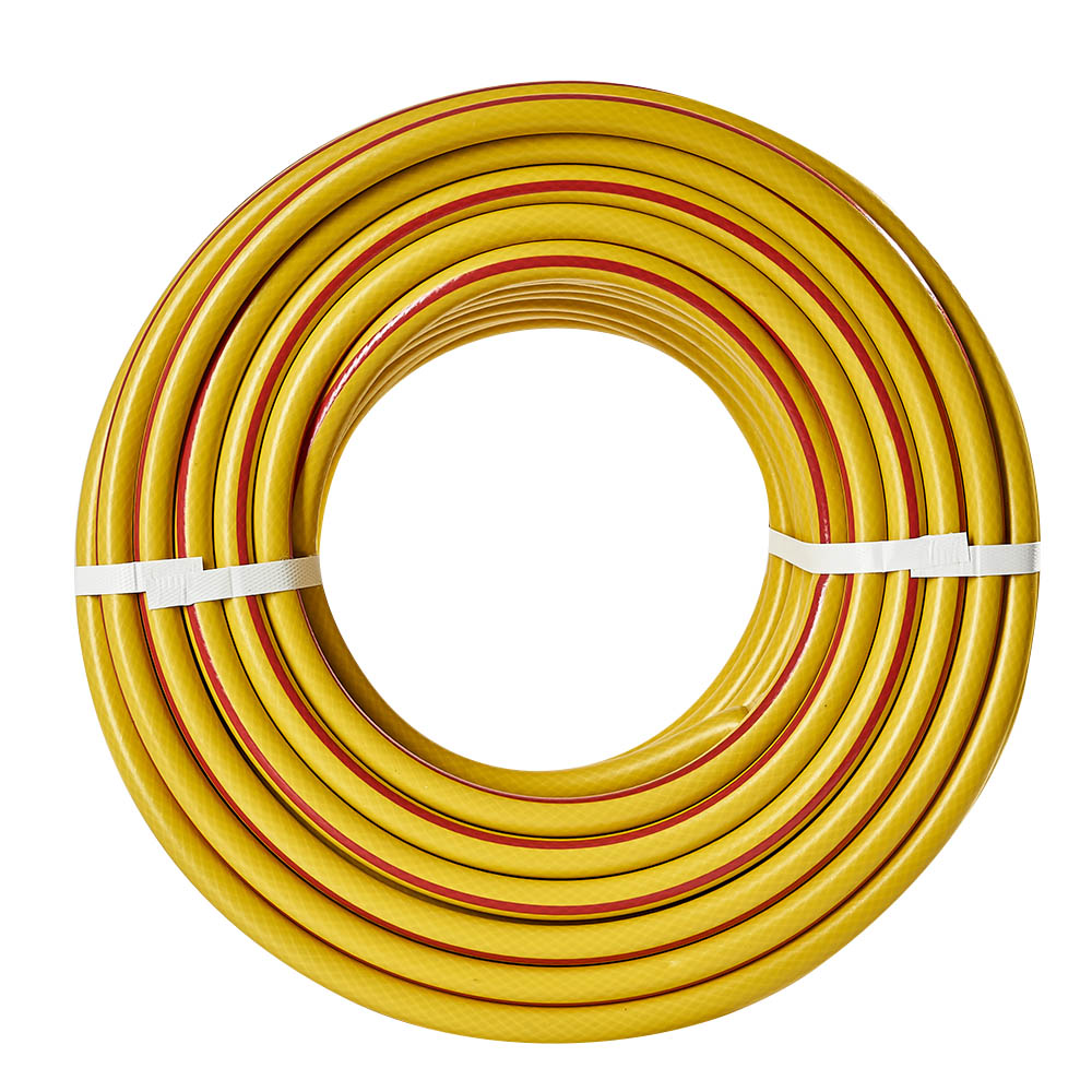 Шланг для поливу Nowa "Tulip" - це надійний і зручний шланг для поливу саду, городу, газону або клумб. Шланг має діаметр ½" і довжину 50 м, що дозволяє охопити велику площу поливу. Шланг виготовлений з полівінілхлориду (ПВХ), який має високу міцність, еластичність і стійкість до впливу води, ультрафіолетового випромінювання та наростання водоростей. Шланг має три шари: внутрішній, середній та зовнішній. Внутрішній шар - це гладка трубка з ПВХ, яка забезпечує вільний потік води. Середній шар - це армування з хрестоподібних ниток, яке надає шлангу міцності та стійкості до тиску. Зовнішній шар - це захисна оболонка із ПВХ, яка захищає шланг від механічних пошкоджень та впливу навколишнього середовища.